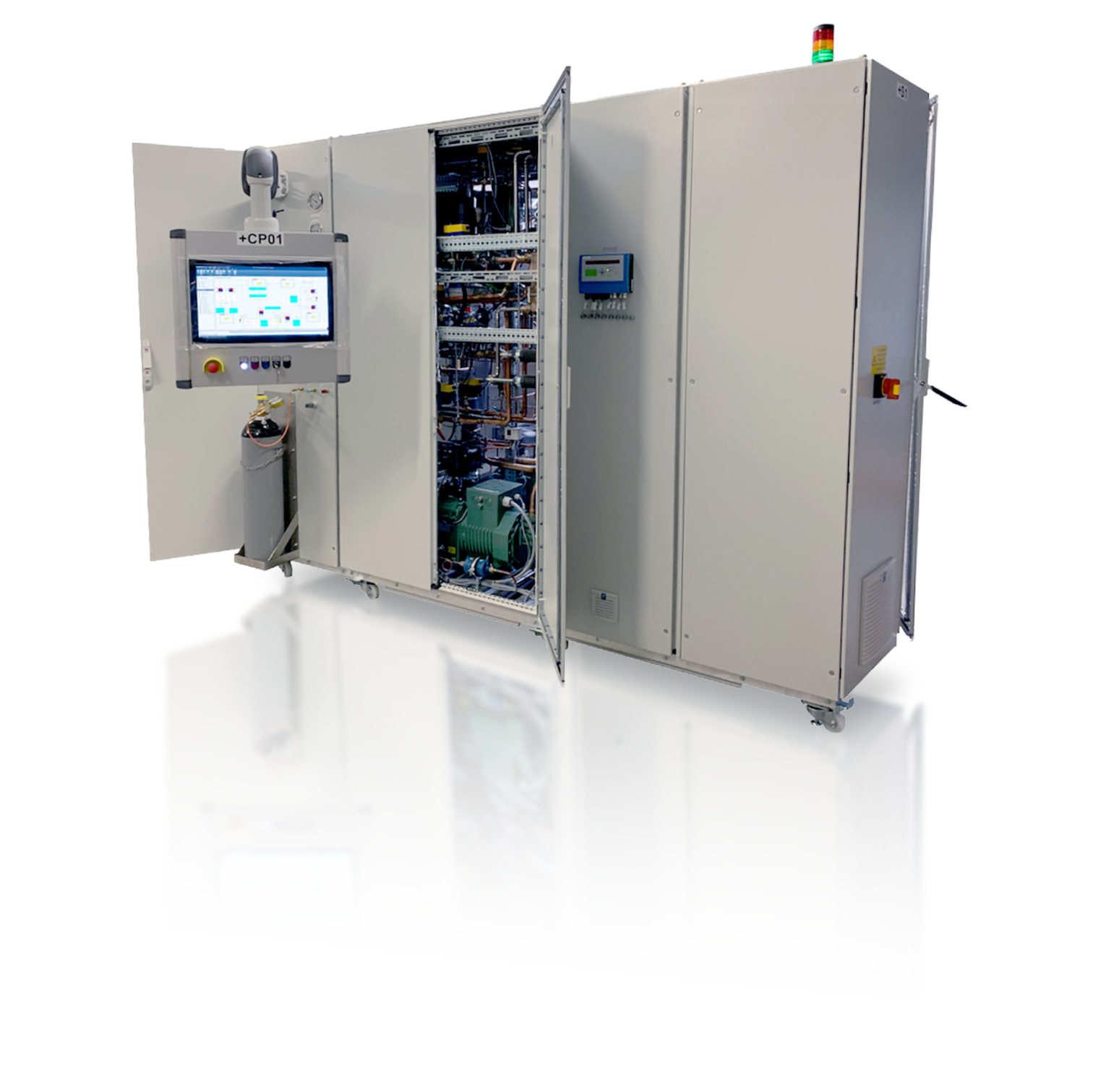 Der nach höchsten Ansprüchen entwickelte IPEvalve Komponentenprüfstand dient der Durchführung von automatisierten Leistungs- oder Dauerlaufprüfungen für verschiedene Arten von Ventilen aus dem Kältemittelkreislauf für Automotive-Anwendungen. In der Ausführung für Funktionsprüfungen enthalten ist eine Einrichtung zur Messung sowie Regelung der Ölumlaufrate (OCR) an einzelnen Stellen im Kreislauf. In der Ausführung für Dauerlaufprüfungen entfällt diese Funktion. Regelbar sind neben dem Niederdruck und dem Hochdruck auch die Überhitzung des Kältemittels in der Saugleitung. Die Ansteuerung der Ventile ist hierbei kundenindividuell, z.B. über LIN-Bus oder ein PWM- Signal. Die Regelung findet über die integrierte SPS statt, in welcher auch alle Regelparameter und softwareseitigen Grenzwerte hinterlegt sind. Die integrierte Sicherheitskette schaltet den Prüfstand bei Überschreitung der eingestellten Grenzwerte oder beim Detektieren einer Kältemittelleckage automatisch ab. Die Bedienung des Prüfstandes erfolgt über einen zentralen Rechner, auf welchem die Prüfstandssoftware IPEmotion mit der entsprechenden Prüfstandskonfiguration vorinstalliert ist. Der Prüfstand wird über den Anschluss an ein Kühlmittelsystem rückgekühlt. Da der Prüfstand eigenständig Druckhalteprüfungen durchführt, ist der Anschluss an eine Stickstoffflasche notwendig. Eine integrierte Vakuumpumpe sowie Kältemittelabsaugstation erleichtern das Rüsten des Prüfstandes.